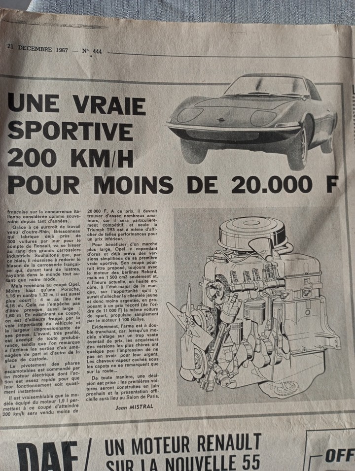 Réponse de Jean_DUMONT sur le sujet Projet Opel GT 21 décembre 1967